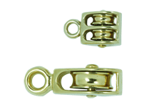 176B-75 3/4" Brass Double WheelPulley, Rigid Eye |